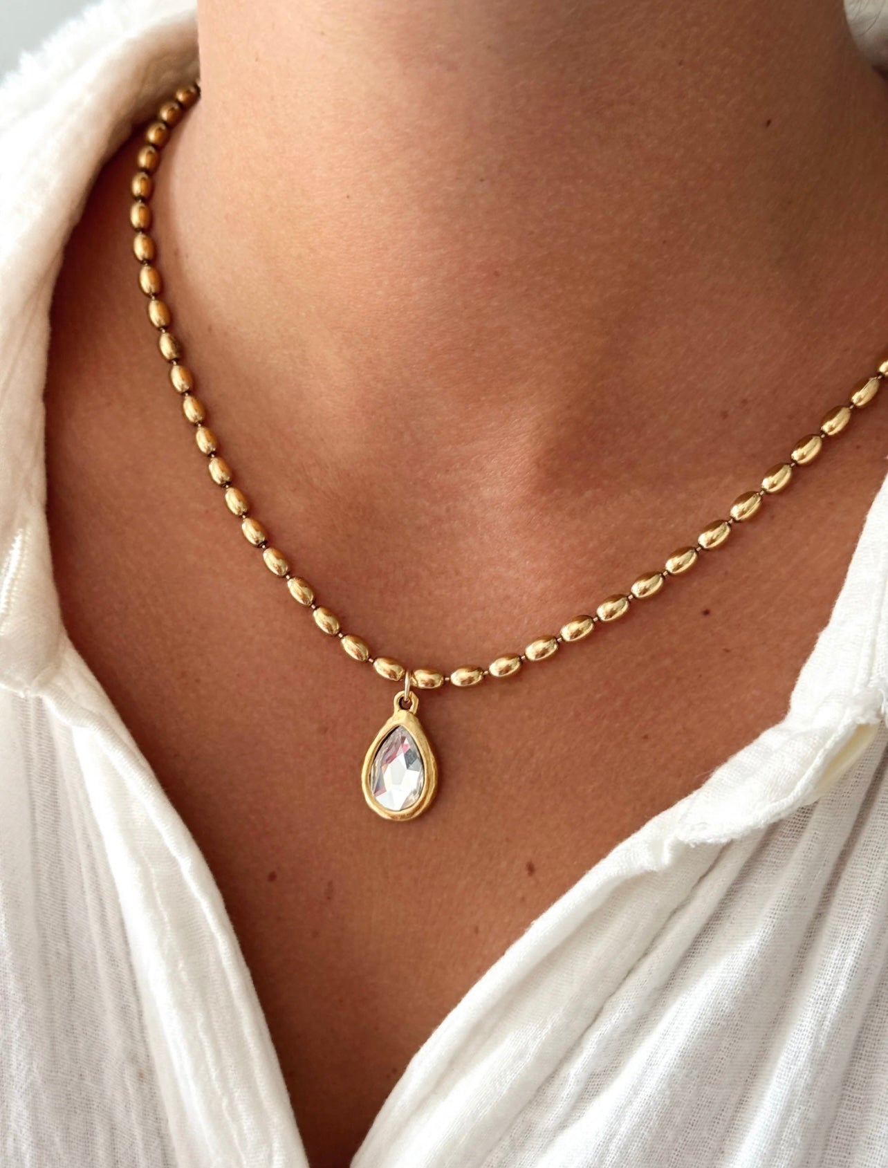Gold Pear Diamond Bezel Studs