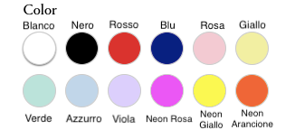 - Enamel Colors: Bianco, Nero, Rosso, Blu, Rosa, Giallo, Verde, Azzuro, Viola, Neon Rosa, Neon Giallo, + Neon Arancione